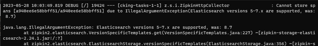 zipkin只支持Elasticsearch 5-7.x,8已不支持。