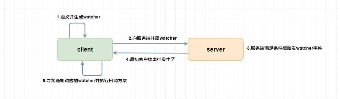 ZooKeeper 允许用户在指定节点上注册一些 Watcher,并且在一些特定事件触发的时候,ZooKeeper 服务端会将事件通知到感兴趣的客户端上去,该机制是 ZooKeeper 实现分布式协调服务的重要特性。