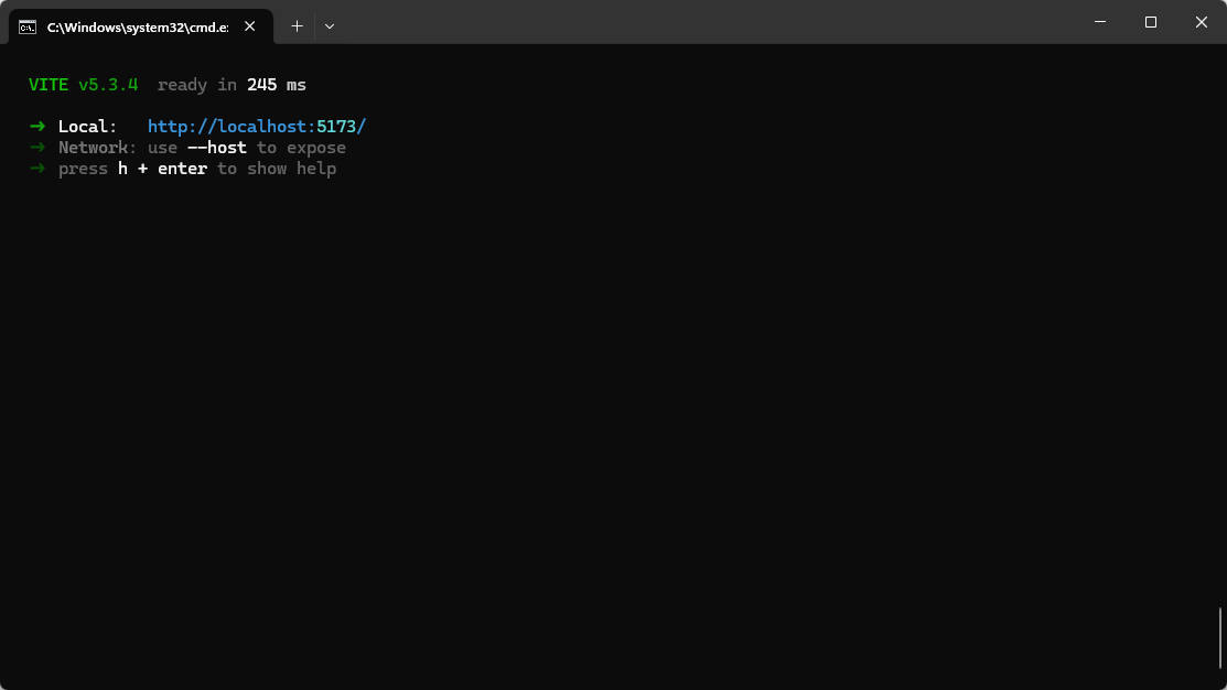 npm install -D vitevite默认以项目目录下的index.html文件作为入口文件,执行下面命令将运行vite: