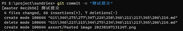 提交暂存区文件git commit -m "message"