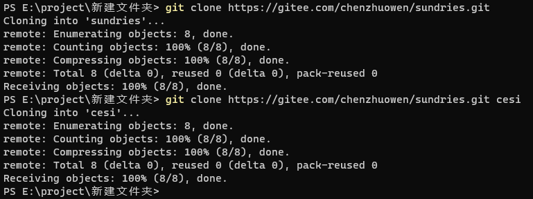 git clone <url> 文件夹名称,将从远端服务器克隆一个仓库到本地。