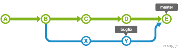 将当前分支与目标分支合并,在当前分支线上产生一个新的分支。