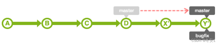 git rebase <目标分支> 将目标分支的提交应用到当前分支后,然后移动当前分支的HEAD指针到合并后的最新提交处。