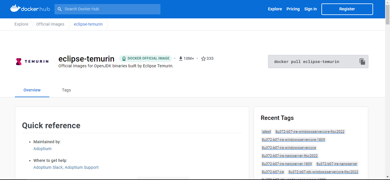 eclipse-temurin是一个包含java运行时环境的、生产级别的镜像,可以基于此镜像构建我们的应用镜像。