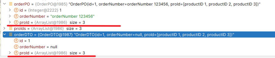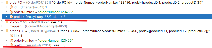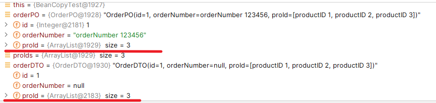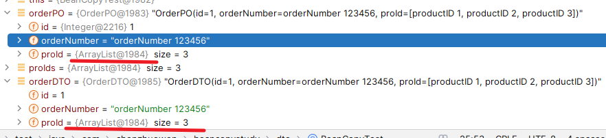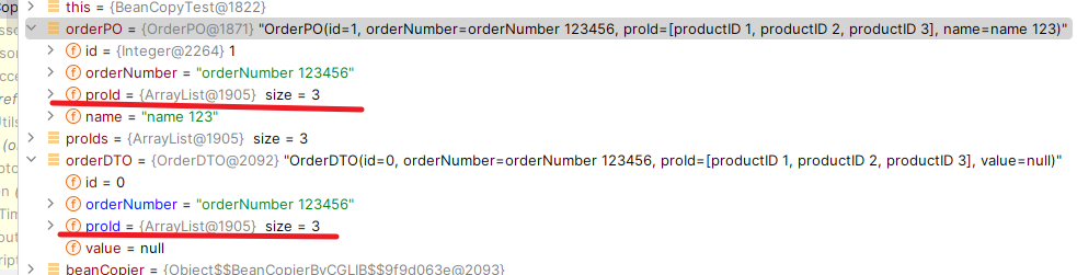 - Spring BeanUtils使用的是浅拷贝,可以看到List对象使用的是同一个对象。