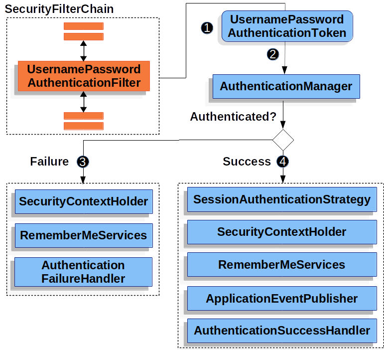 - 最后AbstractAuthenticationProcessingFilter将这个已认证的Authenticaiton对象放在SecurityContextHolder中,放在SecurityContextRepository中。